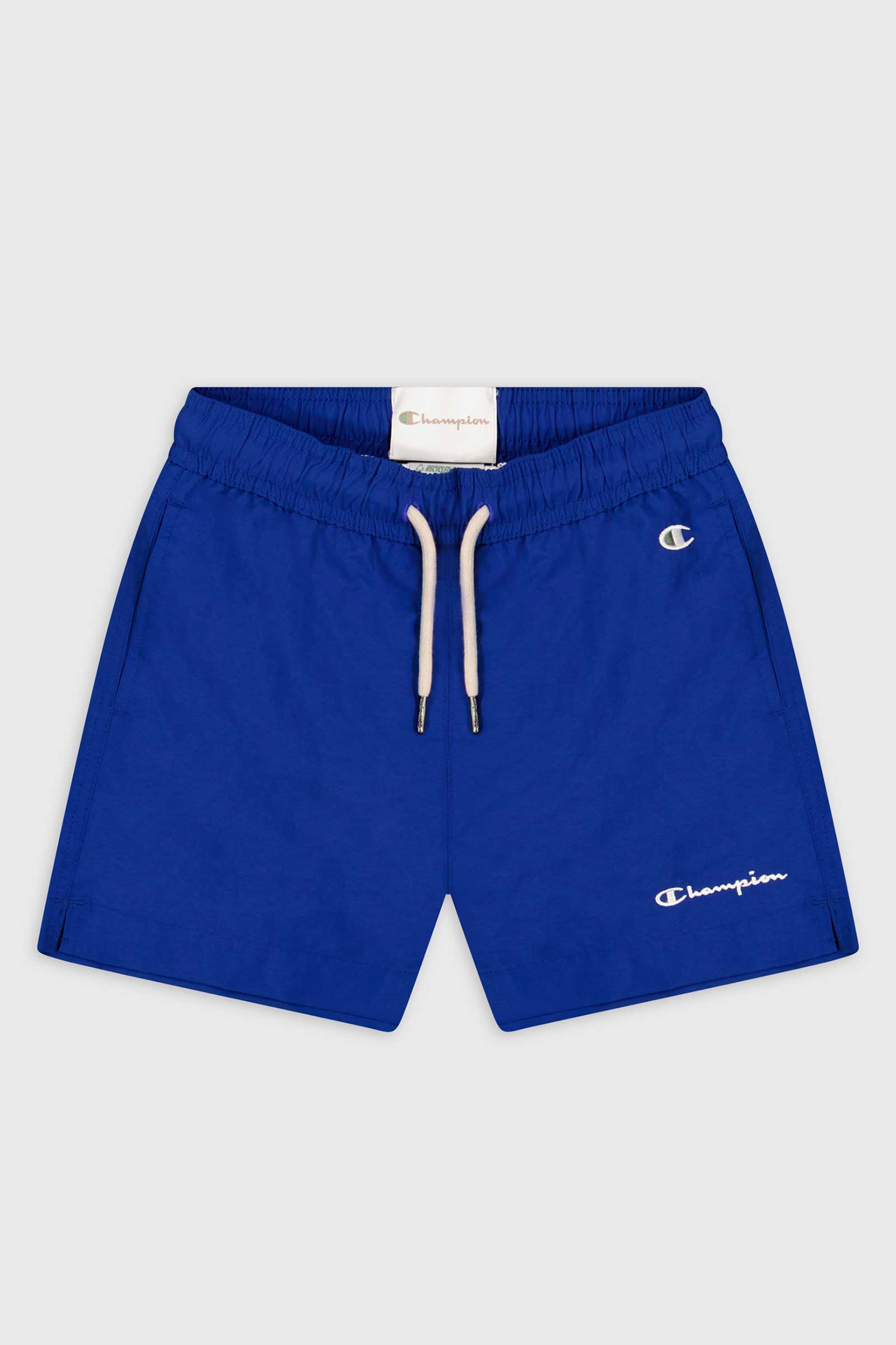 Champion 306338 Badebukser, det er blå badebukser fra Champion. Shortsene har elastik og snøre i taljen, et par skrå forlommer og to små logoer på venstre ben. 50% polyamid 50% polyester - Vaskes ved 30 grader