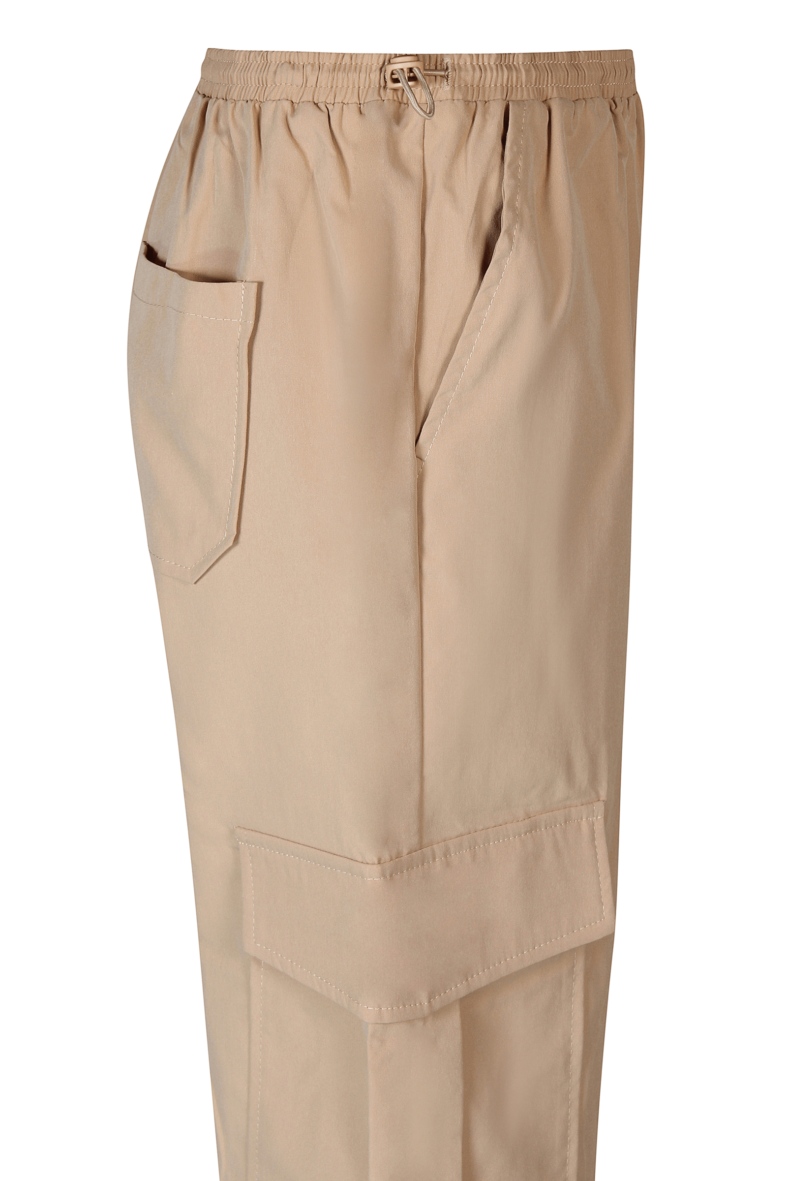 D-xel 400047 02240 Zanne cargo bukser i sand med snørre foran og elastik nederst.Lavet af 100% Polyester vask ved 30 grader