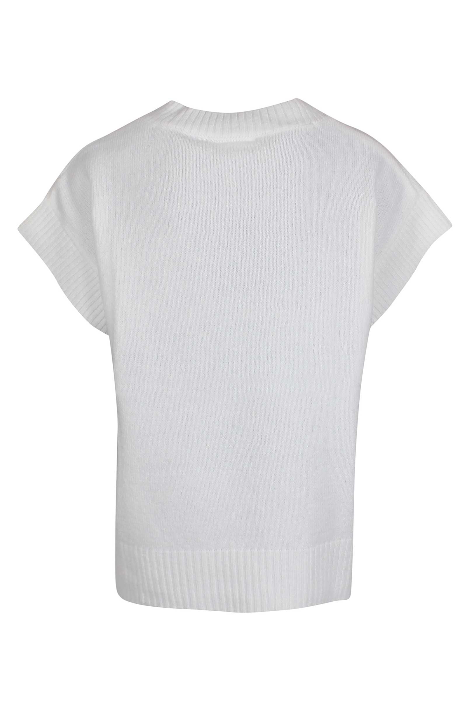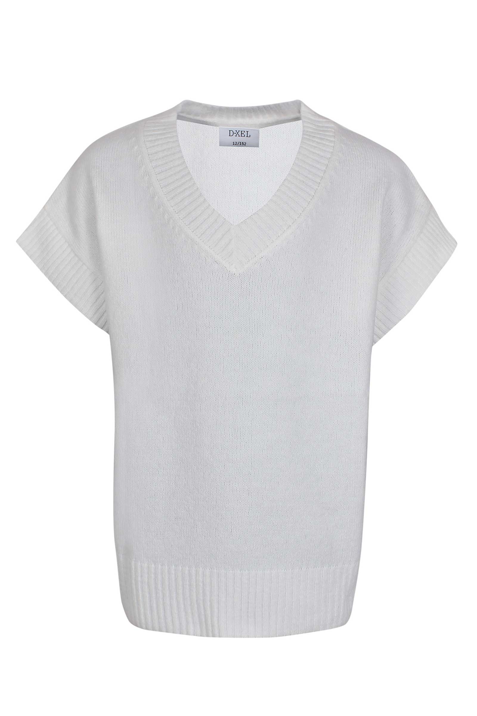 Super sød vest fra D-XEL. Vesten kommer her i en klassisk hvid farve og med ribkanter.