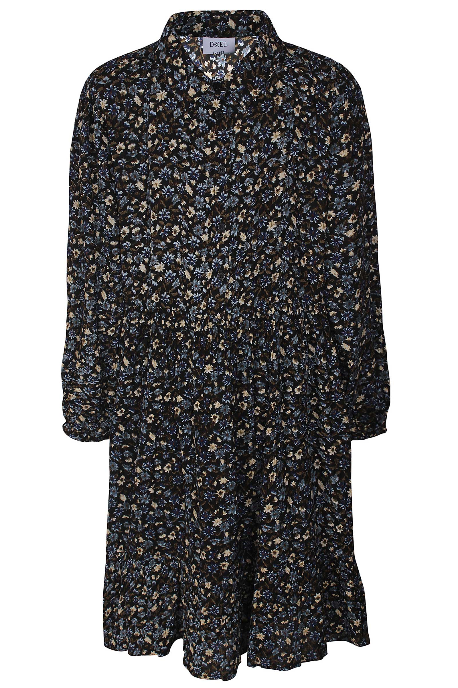 Mega fin kjole fra D-XEL i et super flot gennemført blomster mønster. Kjolen har knaplukning øverst foran og kommer i mange forskellige fine farver.