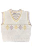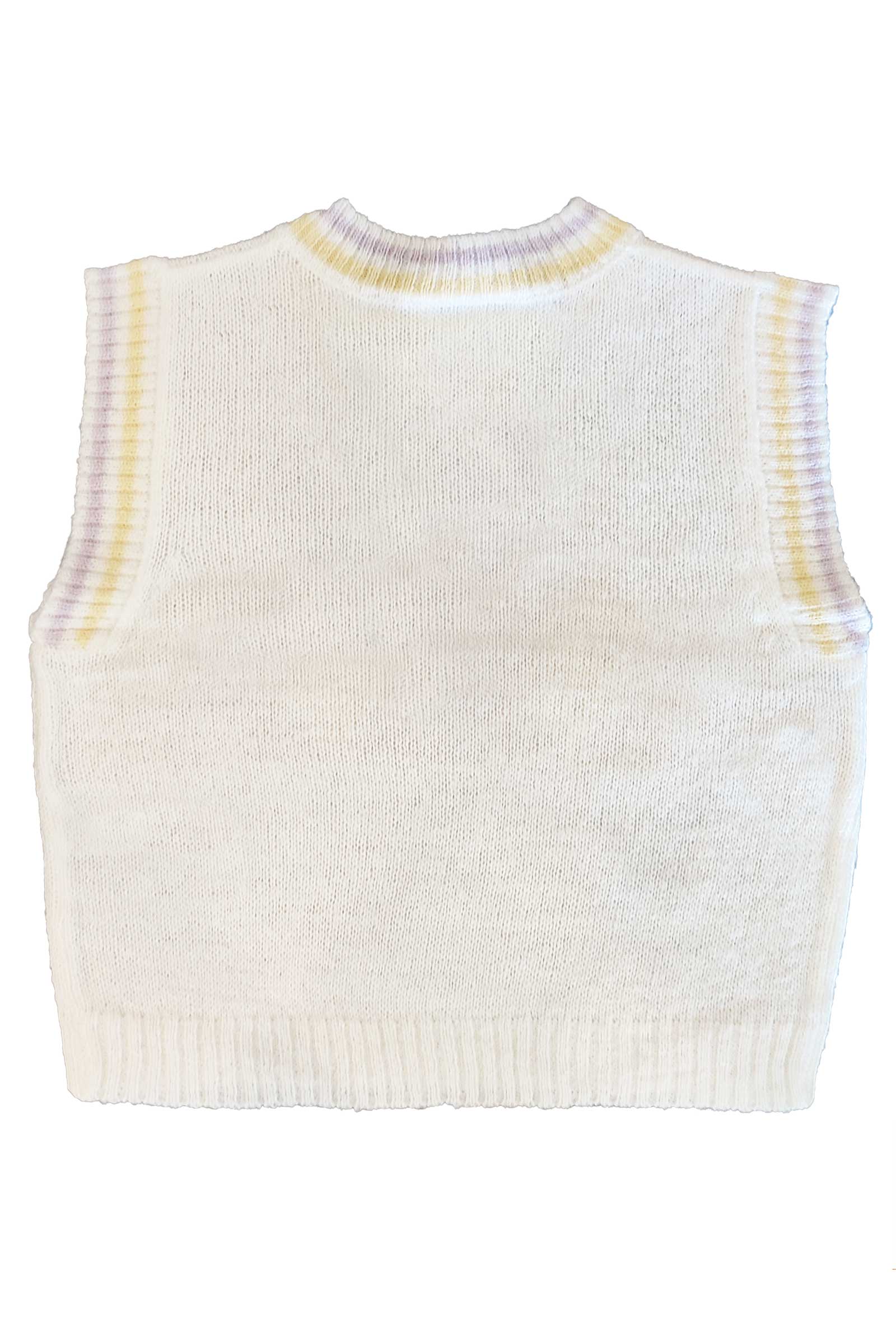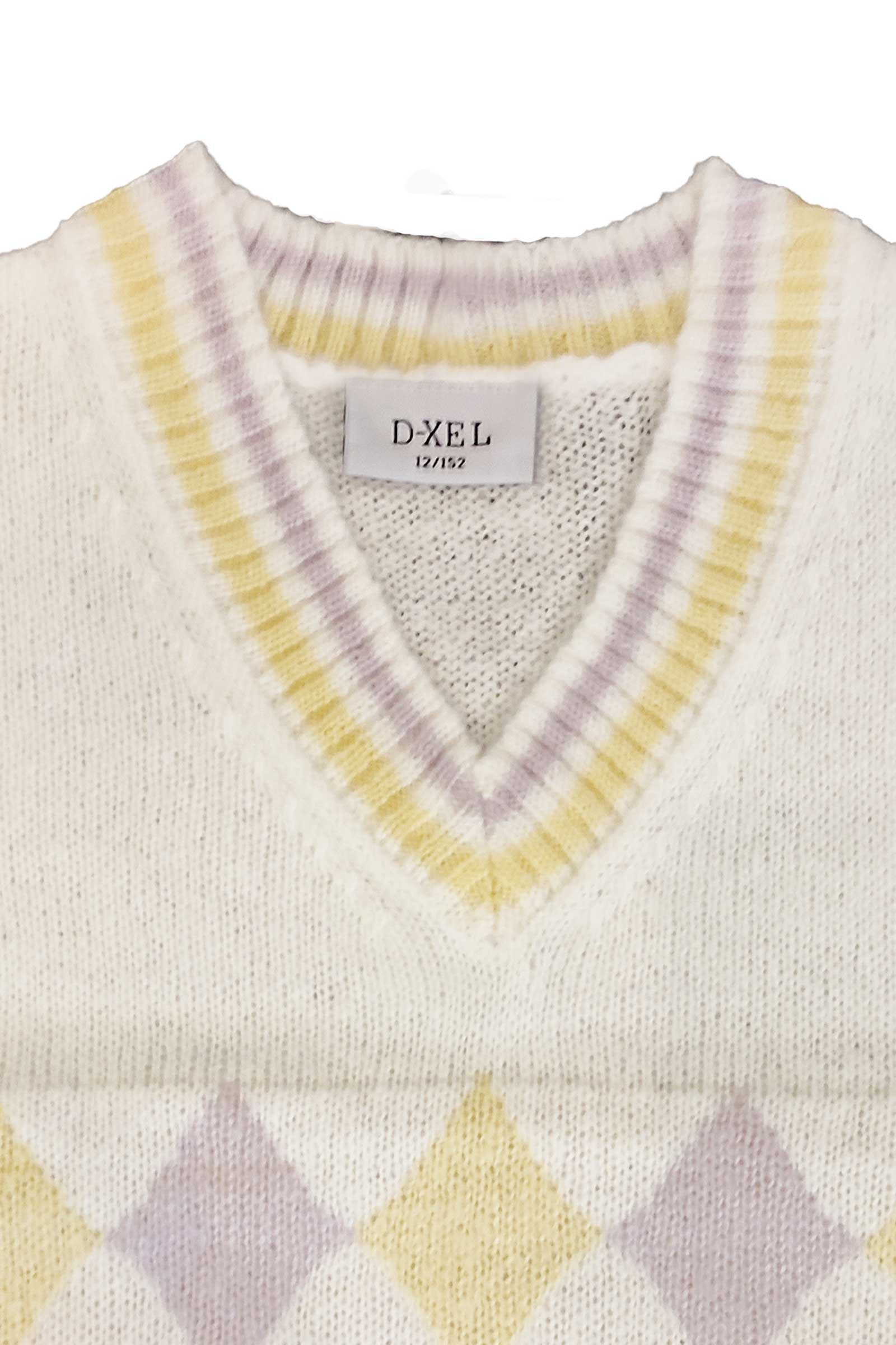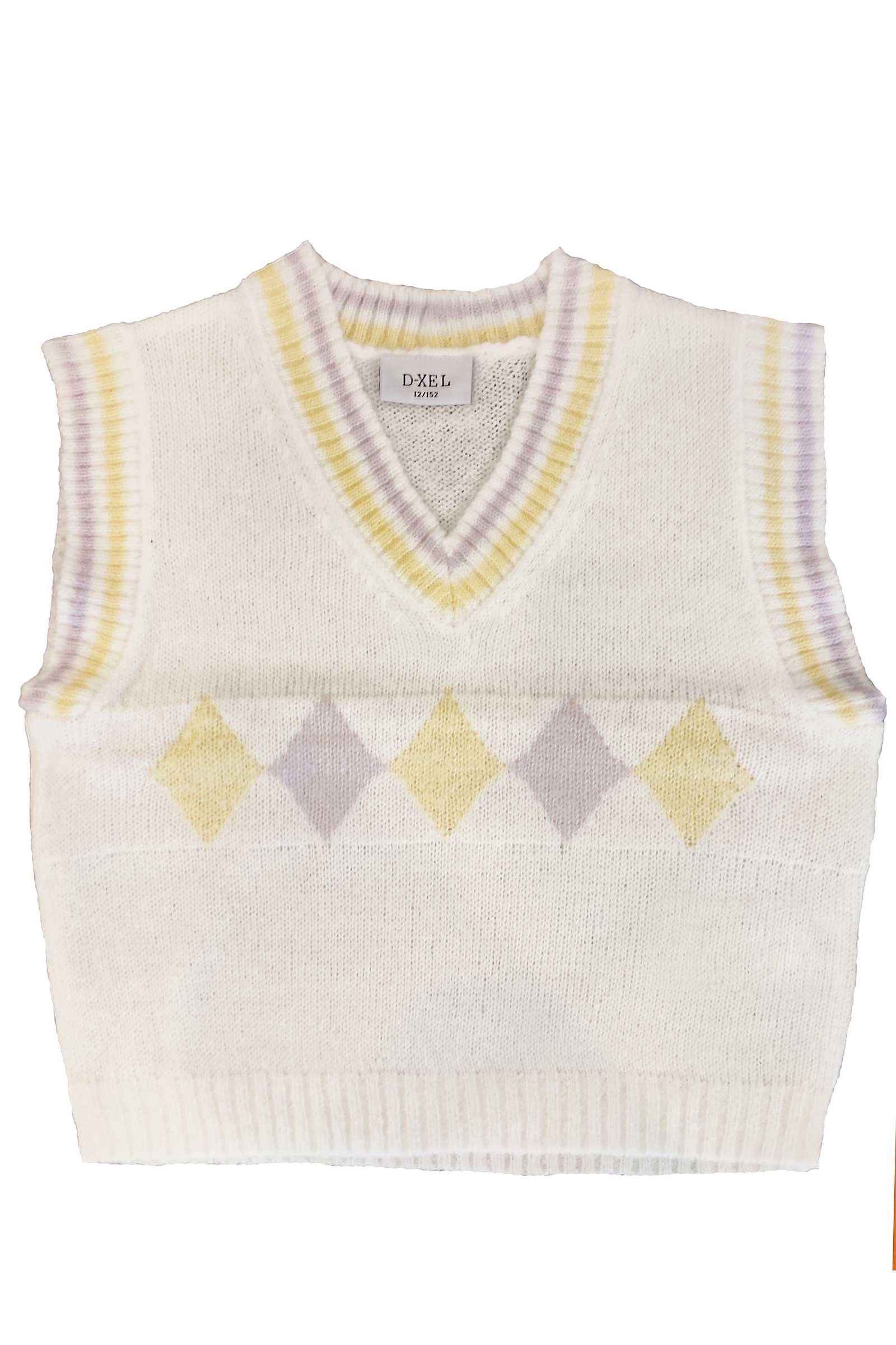 Mega fin vest fra D-XEL. Her kommer den i en hvid farve, med et lilla og gul mønster.