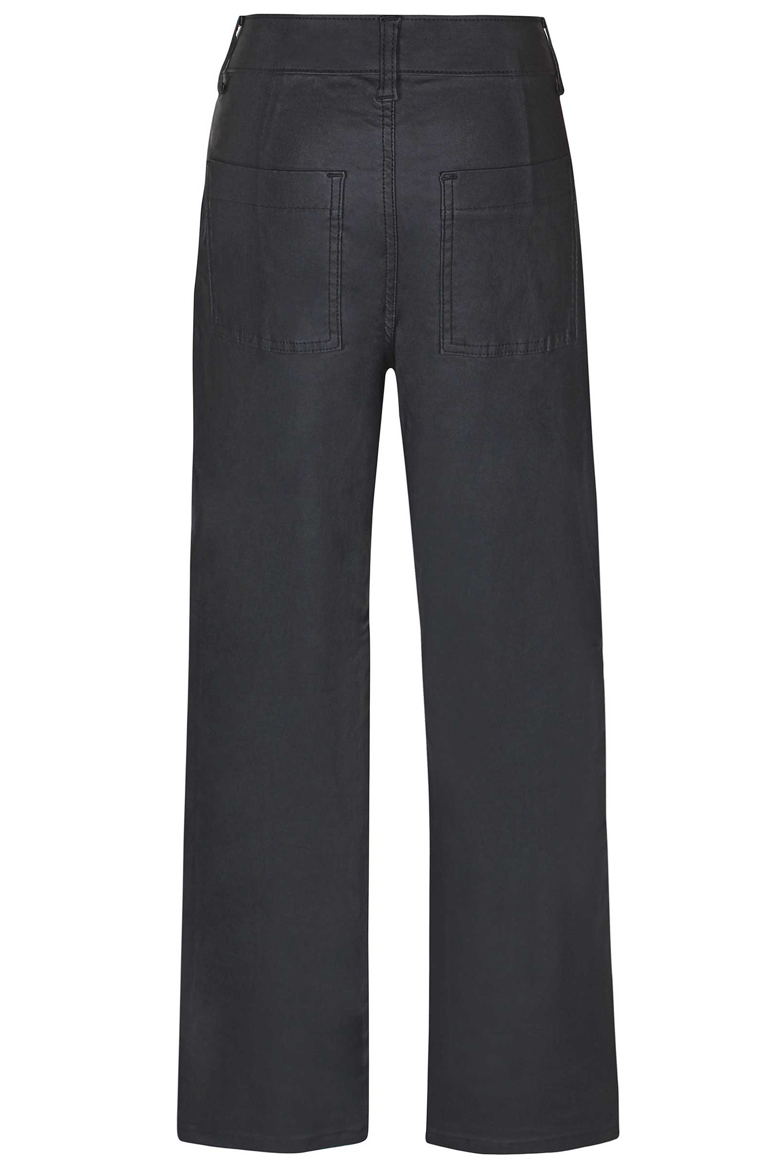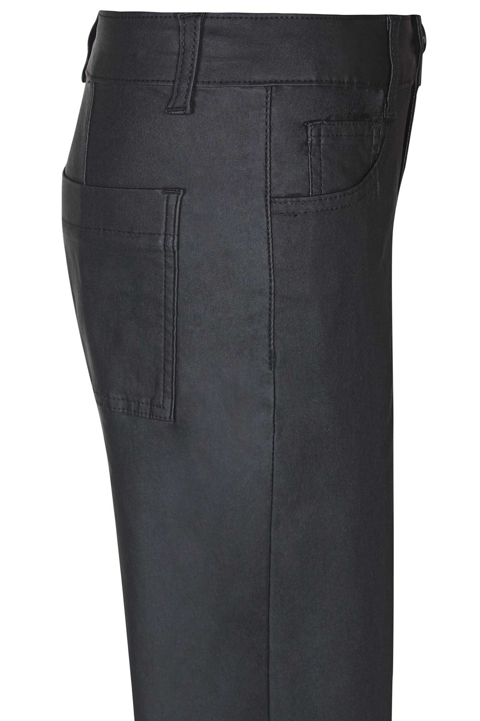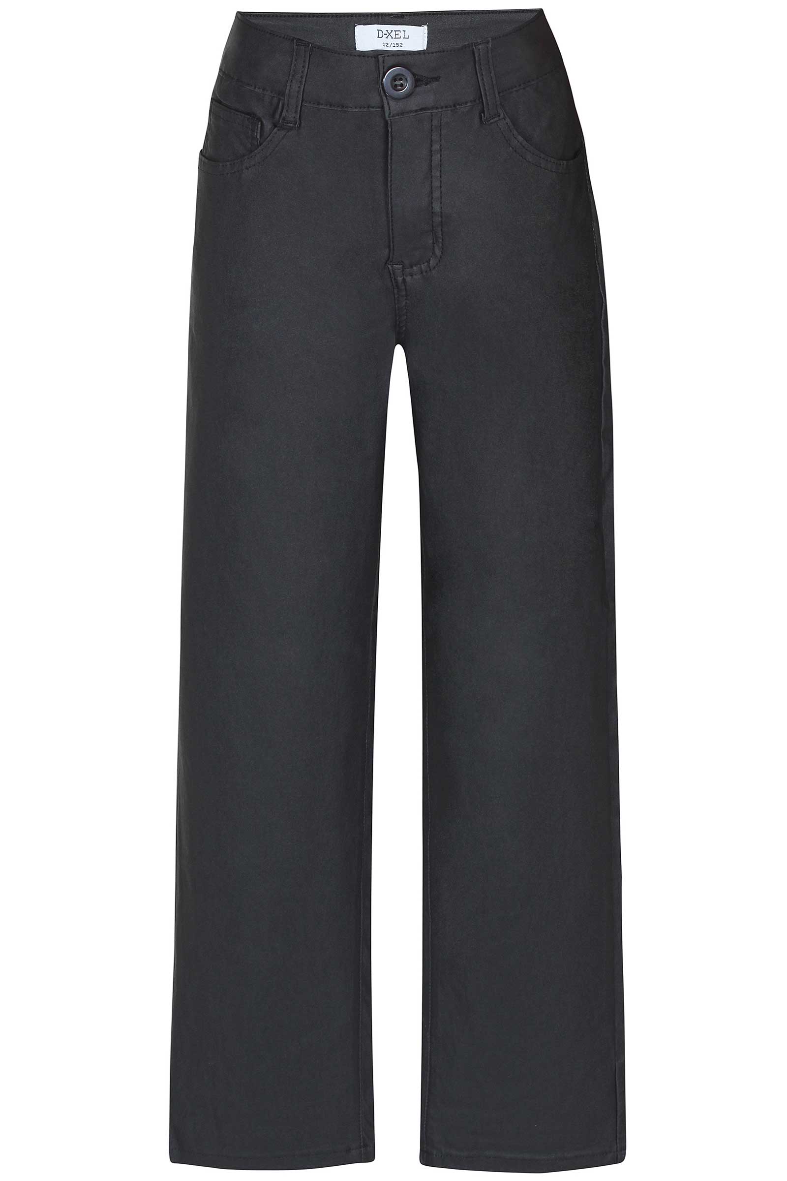 D-XEL pige bukser i sort med en fin coated metervarer. Bukserne her har bedre ben, samt justerbar elastik i livet.