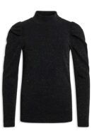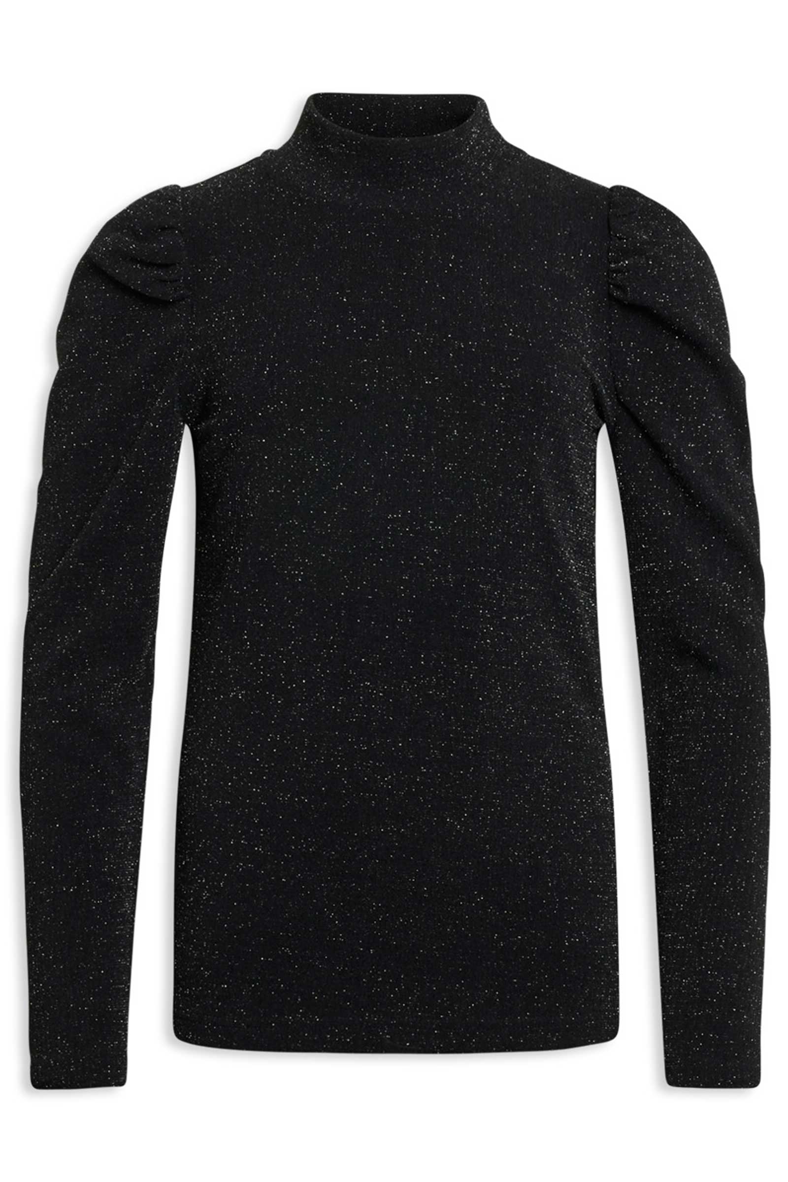 Super søde bluse fra Grunt, den kommer her i en lækker sort farve med glimmer, den er høj i halsen.