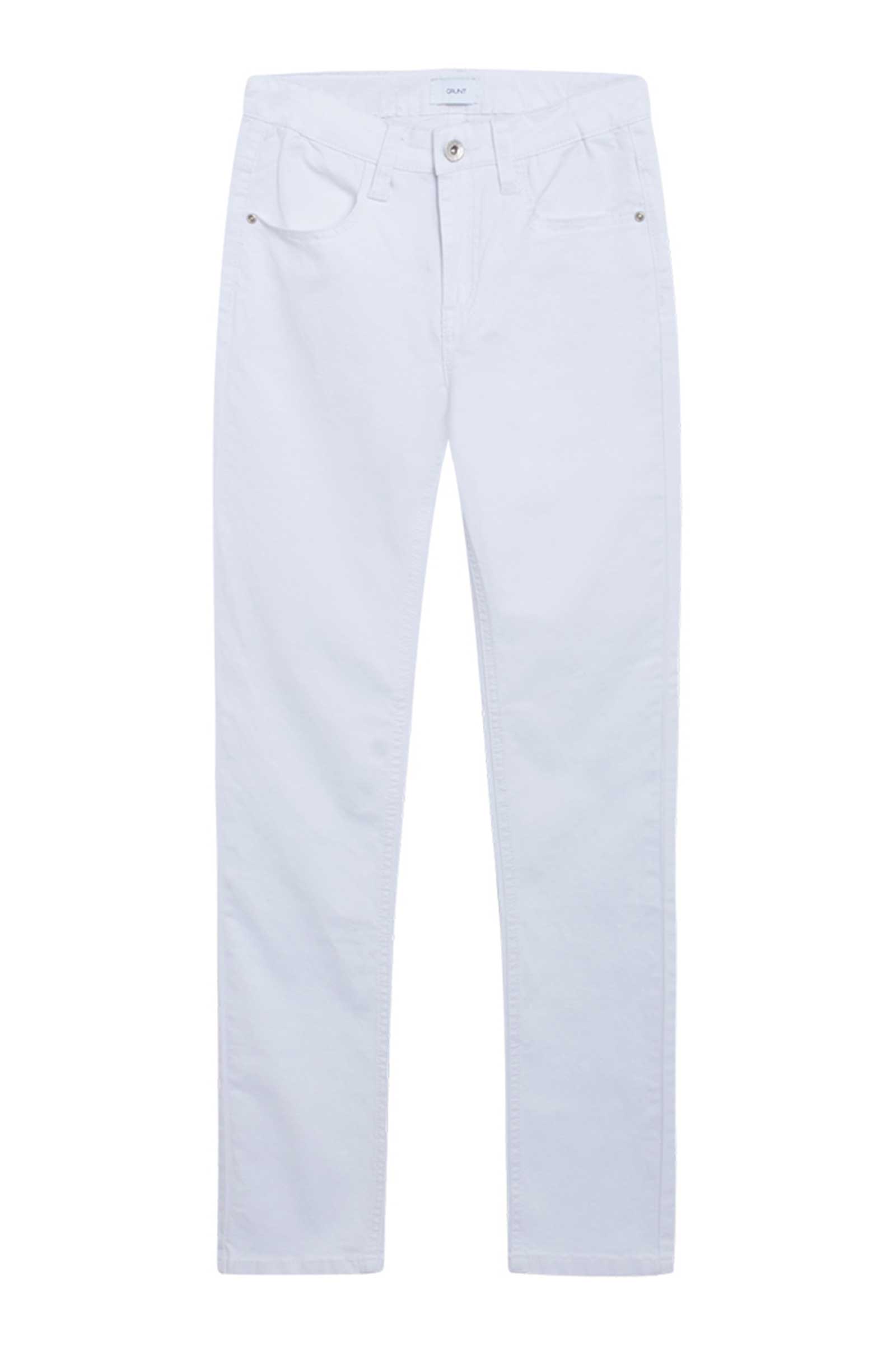 Hvide bukser fra Grunt, Med knap og lynlås foran.