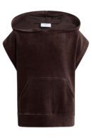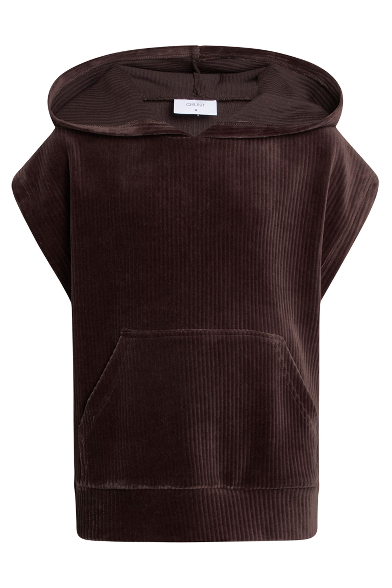 Grunt vest i brun med hætte og lomme foran.