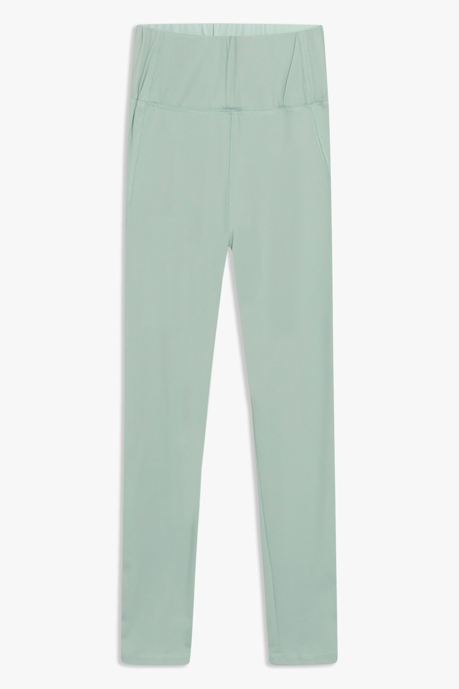 Fede high waist leggings I lysegrøn fra Grunt. Der er bred elastikkant i taljen. Blød kvalitet med stræk. Samme farve hele vejen rundt.