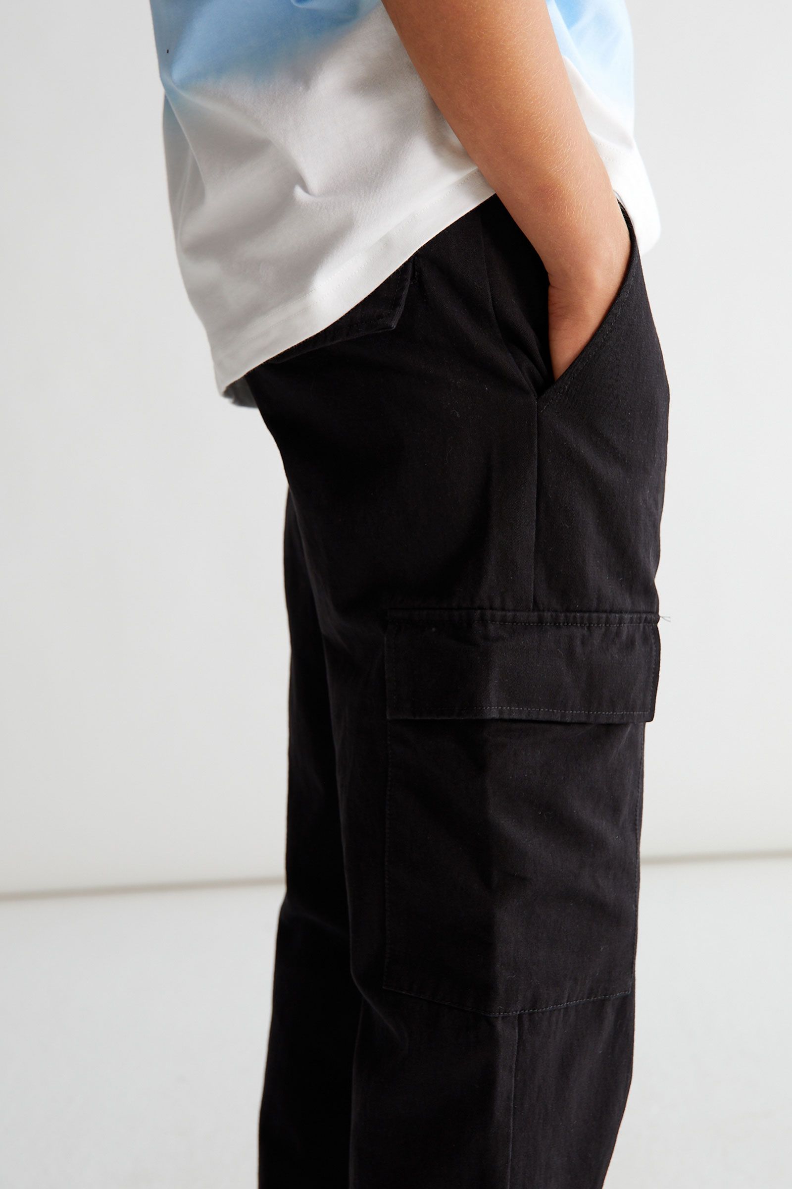 Super lækre cargo bukser fra Grunt. Cargo bukserne kommer med lommer på siderne. Skrålommer foran og lynlåslukning. Blød kvalitet i 100% bomuld.