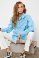 Langærmet skjorte. Skjorten har en klassisk krave og gemt knap lukning foran og nederst på ærmerne. Normal pasform.