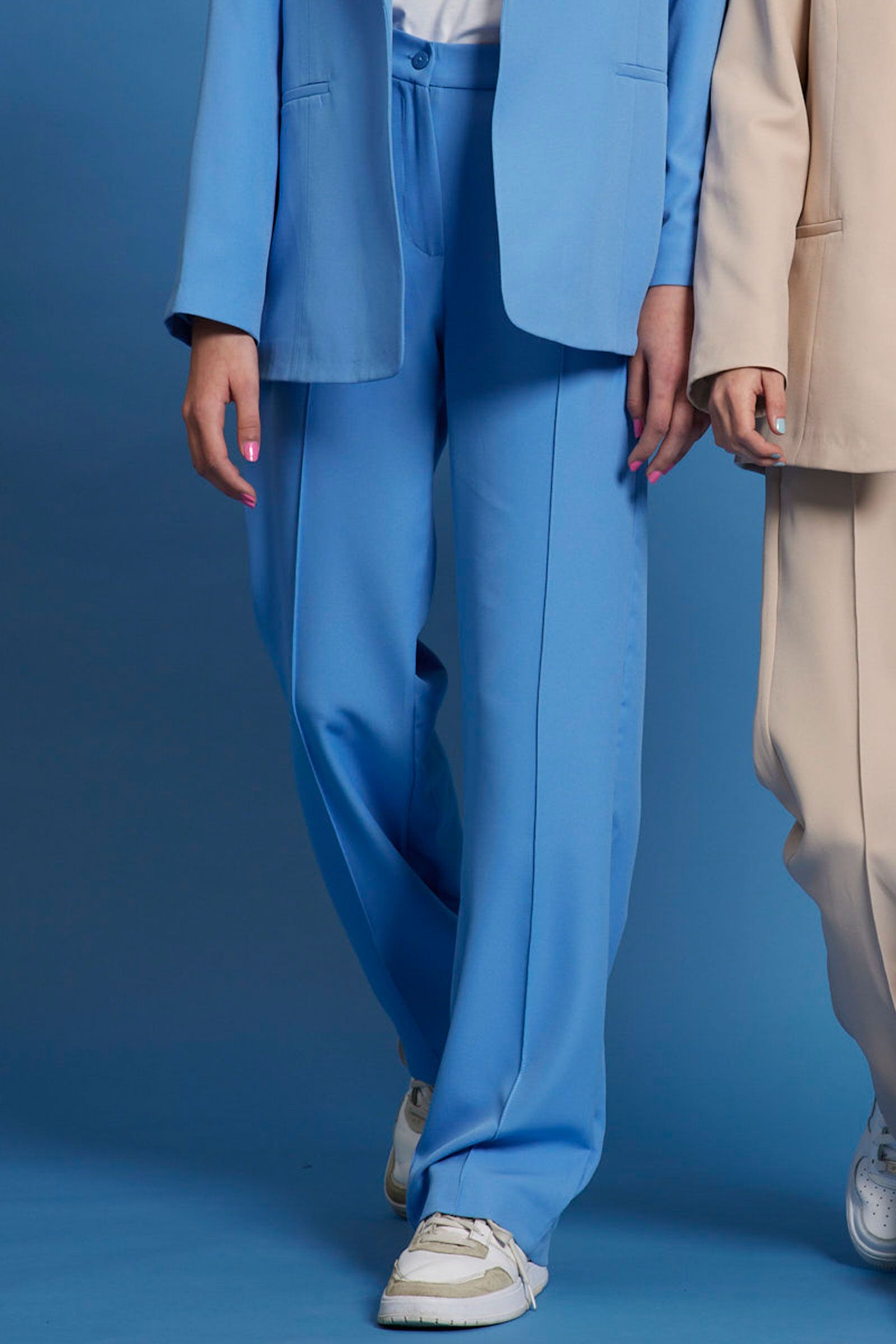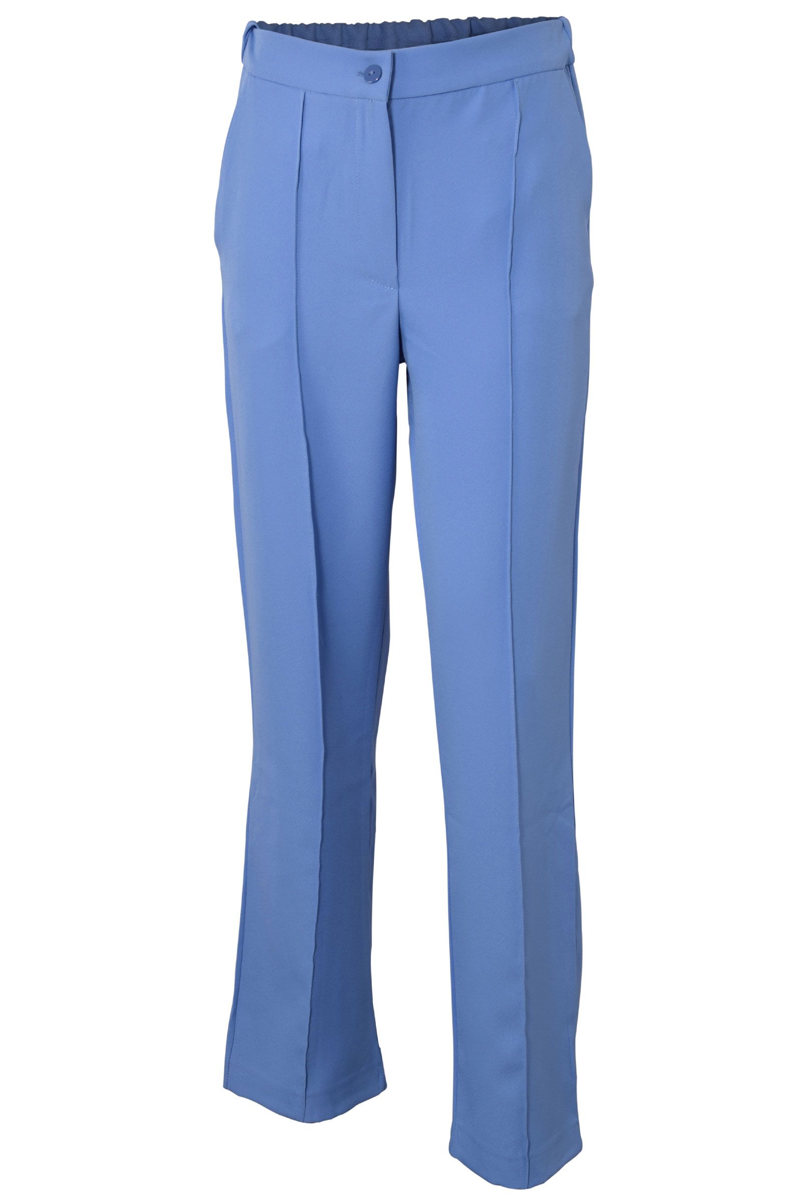 Bukserne med høj talje med elastisk smock bagpå, sidelommer og vide ben.