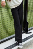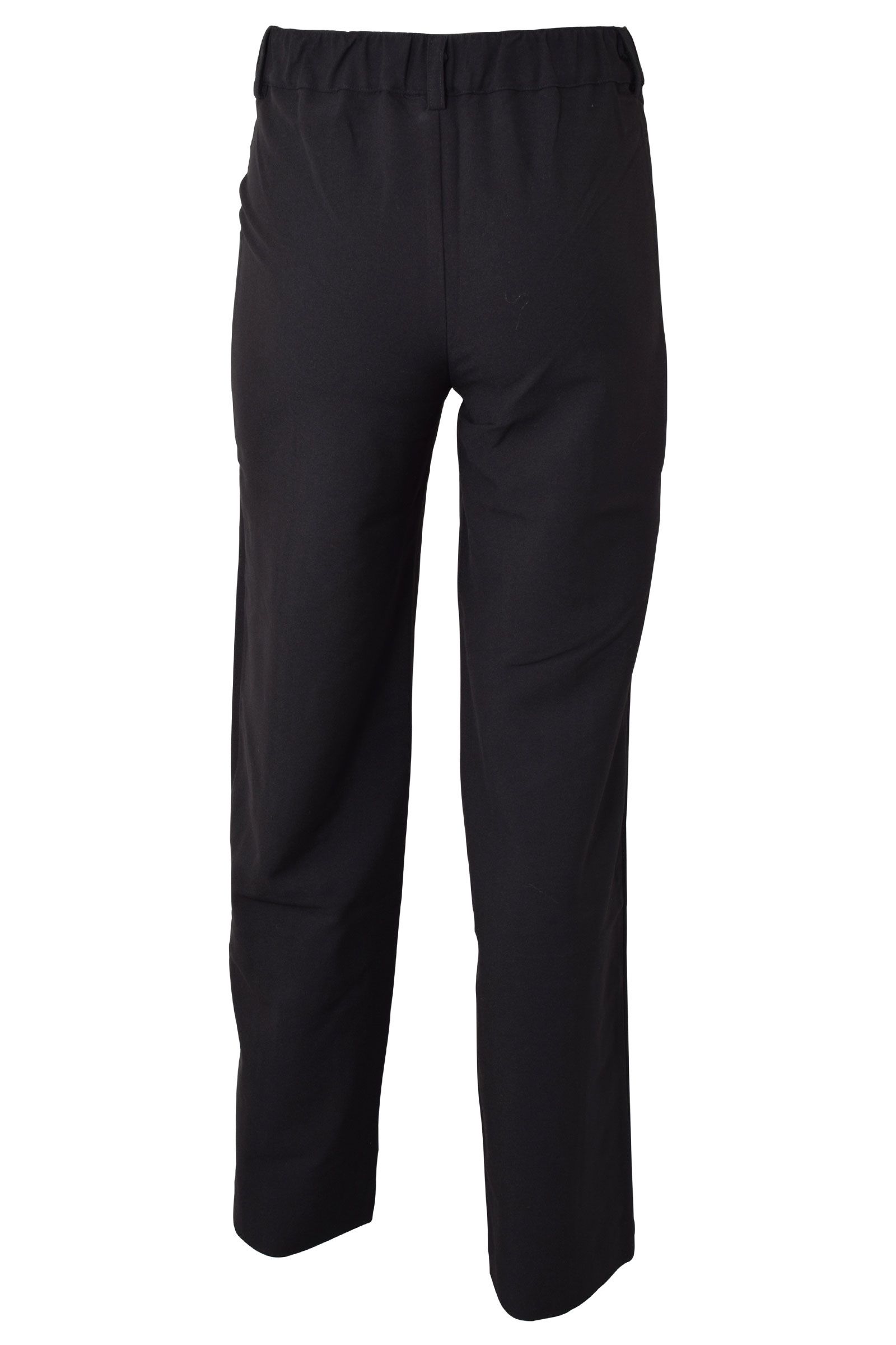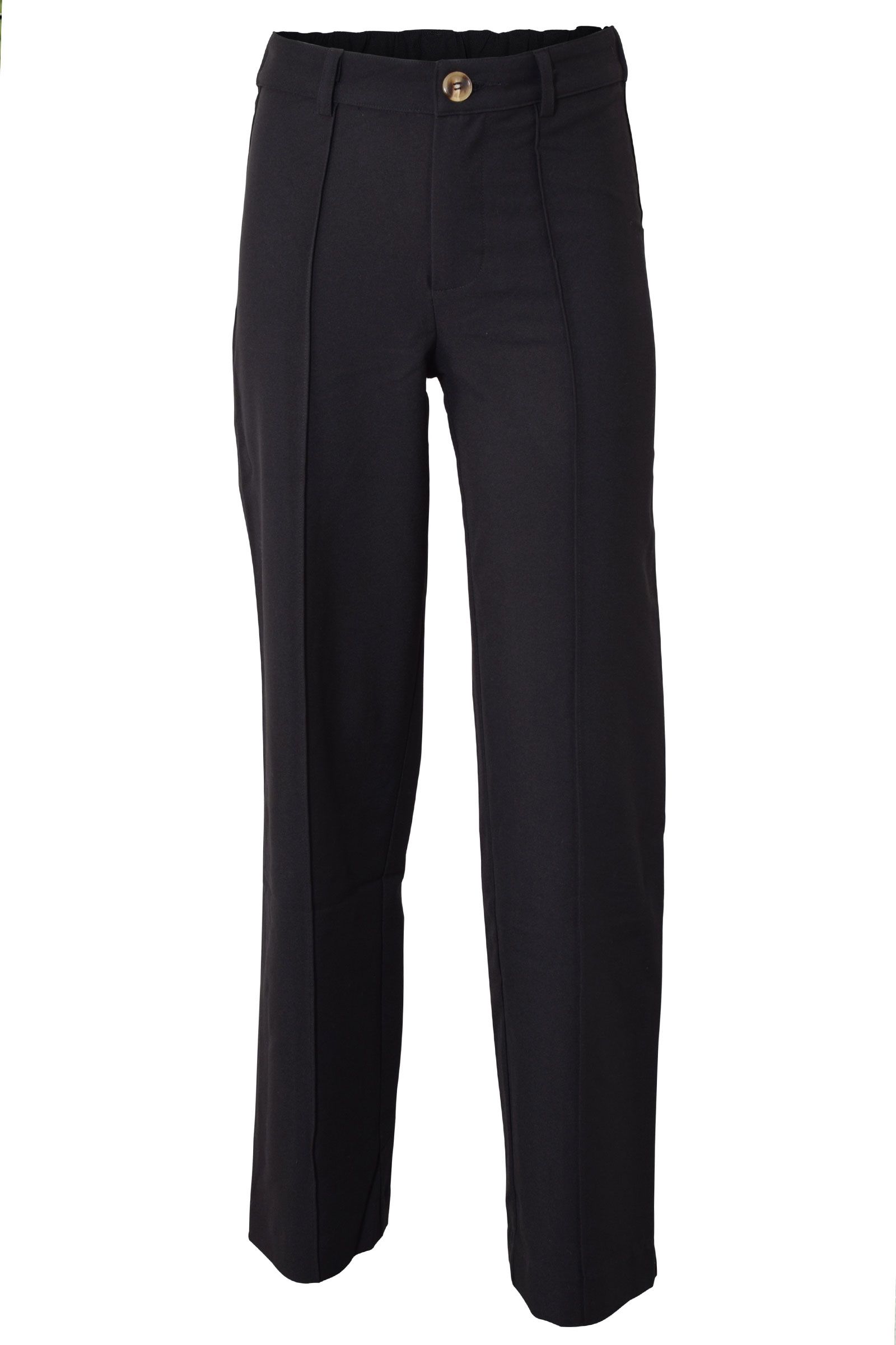 Bukser med høj talje med elastisk smock bagpå, sidelommer og vide ben.
