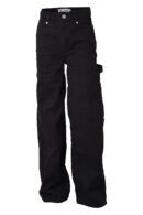 Denim jeans med stretch, wide ben, for lommer og bag lommer. Lynlås gylp og knap foran, og justerbar elastik i linningen. Bukserne har hul ved knæ som giver et cool råt udtryk.