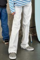 Hvide jeans fra HOUNd. Bukserne er højtaljede, har brede ben og både for- og baglommer. 98% bomuld 2% elastan Vaskes ved 30 grader