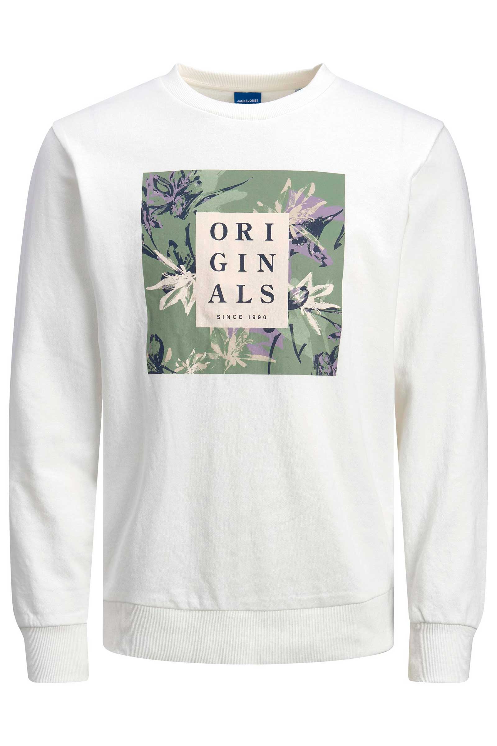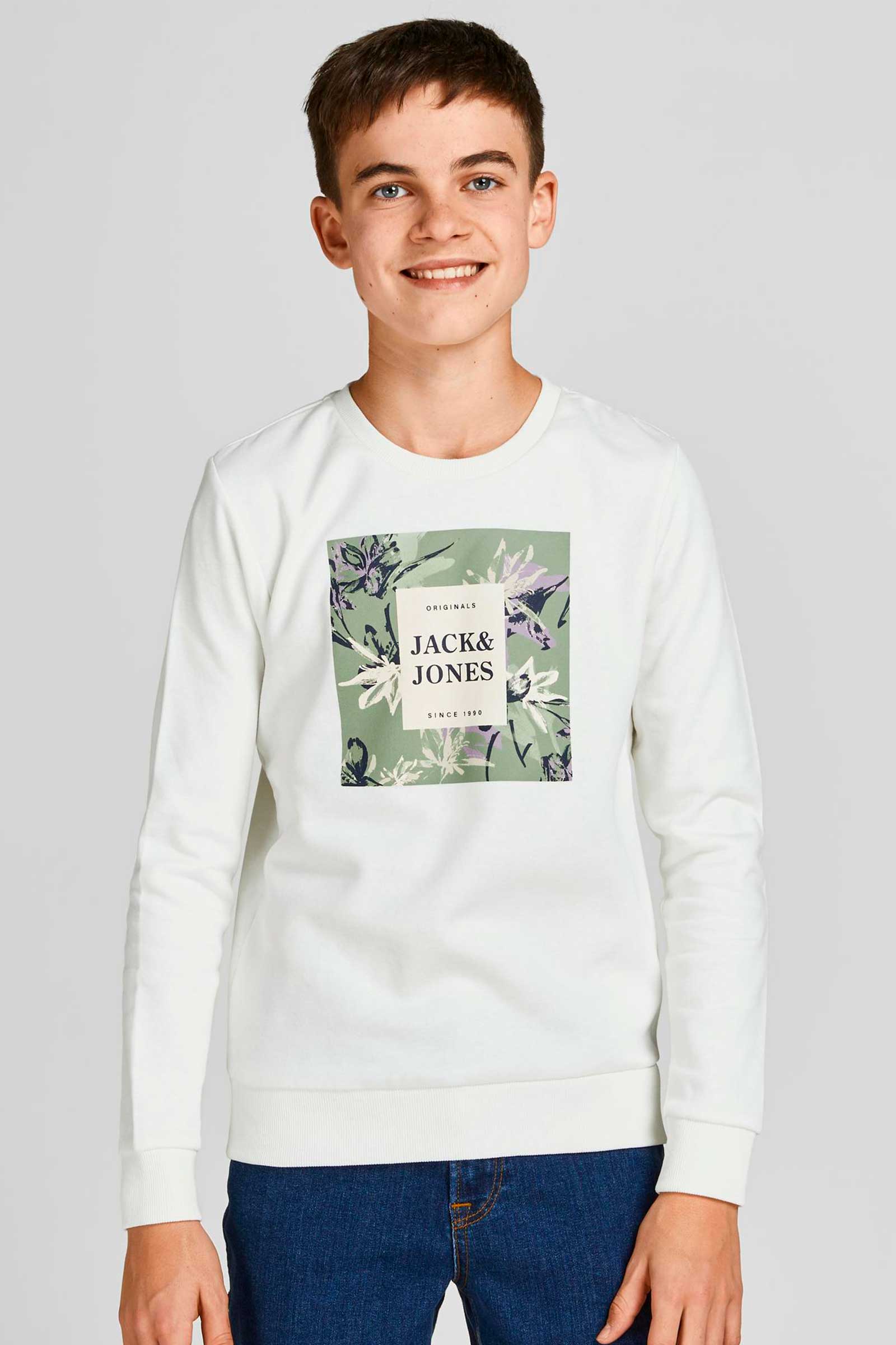 Mega fed bluse fra Jack&Jones. Den kommer her i en hvid farve med et stort print med logo på brystet.