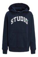 Jack & Jones hoodie I blå med teksten “STUDIO”