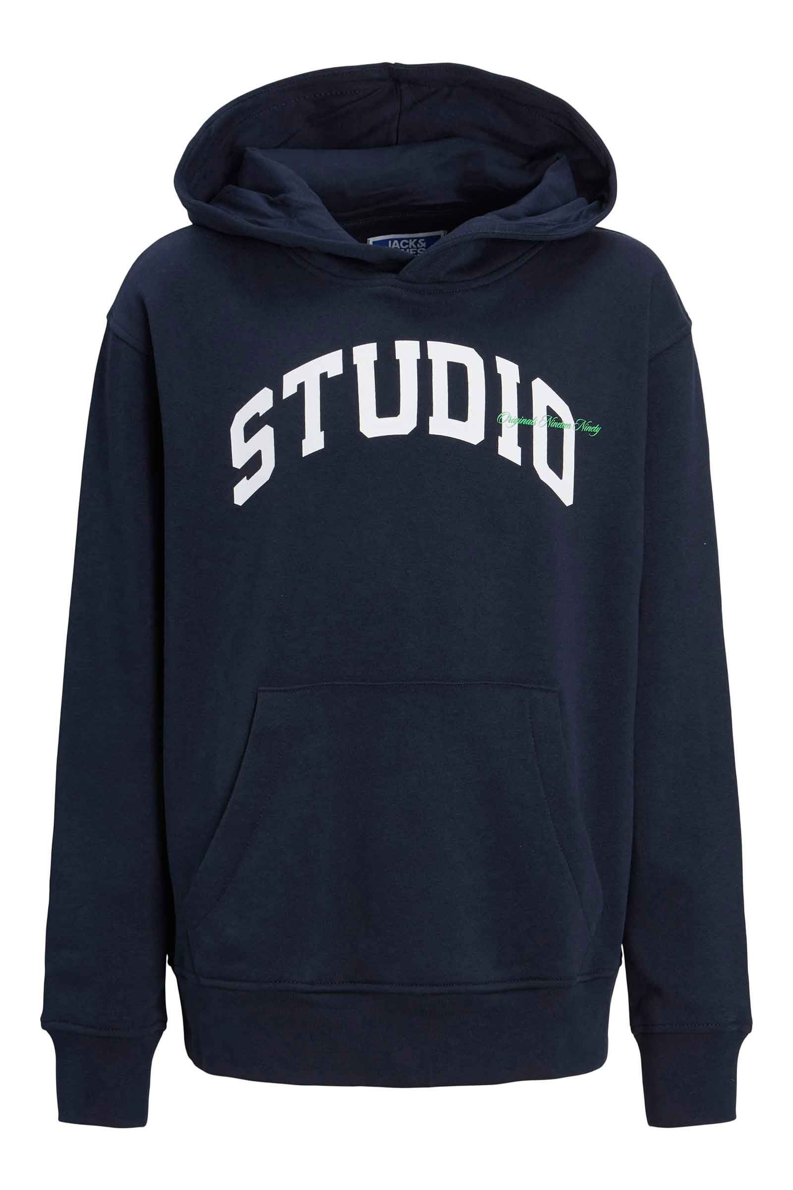 Jack & Jones hoodie I blå med teksten "STUDIO"