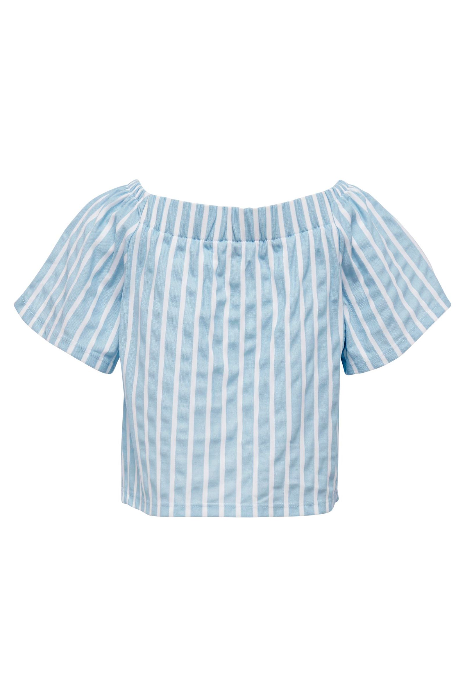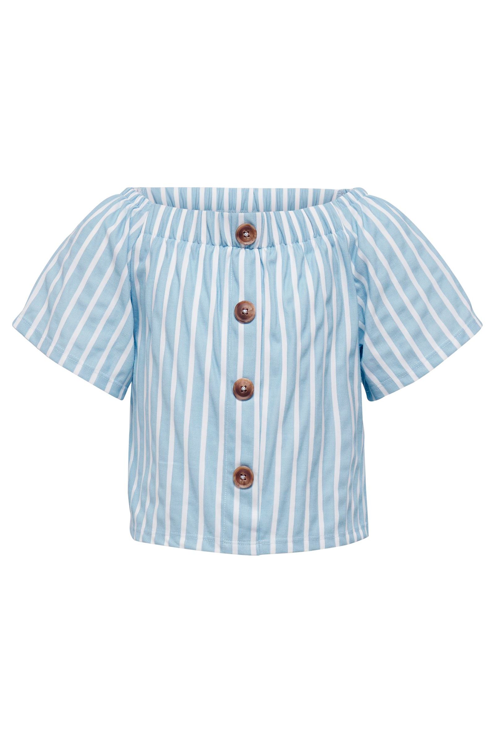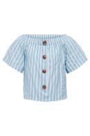 Super sød t-shirt fra KidsOnly. Den er i et hvid og blåt stribe mønster, med knapper for at lukke.