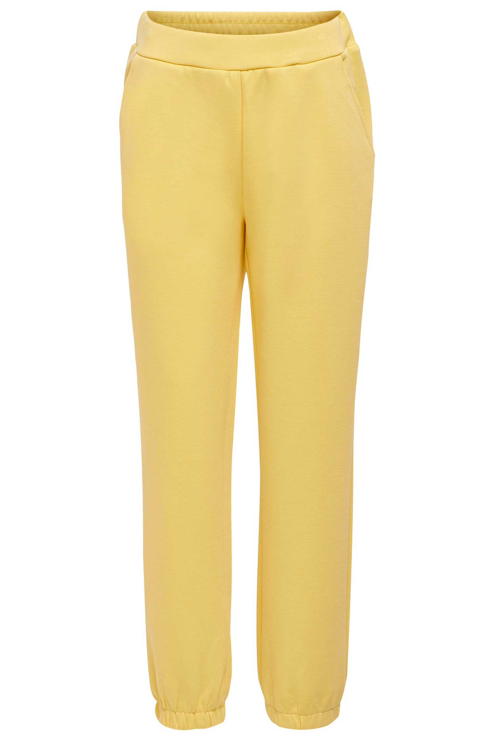 Super dejligt par bukser fra ONLY, bukserne kommer her i en lækker gul farve med rib kant i taljen og nede ved anklerne.