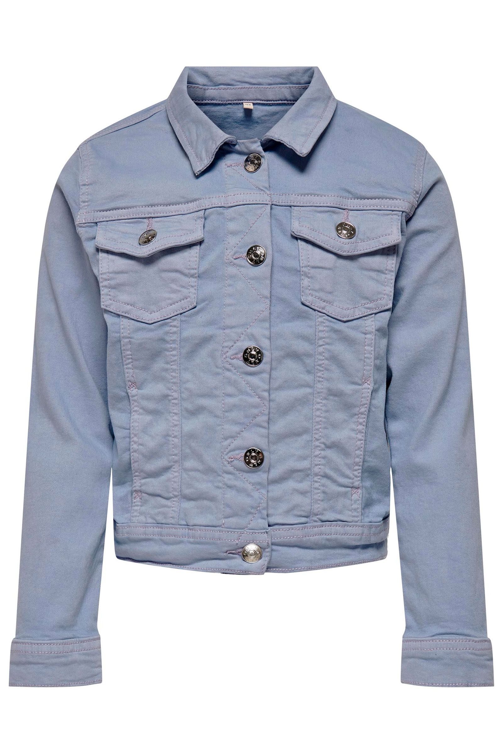 Lækker jakke fra ONLY i en flot blå farve. Jakken har 2 brystlommer med knaplukning samt knaplukning hele vejen ned foran.
