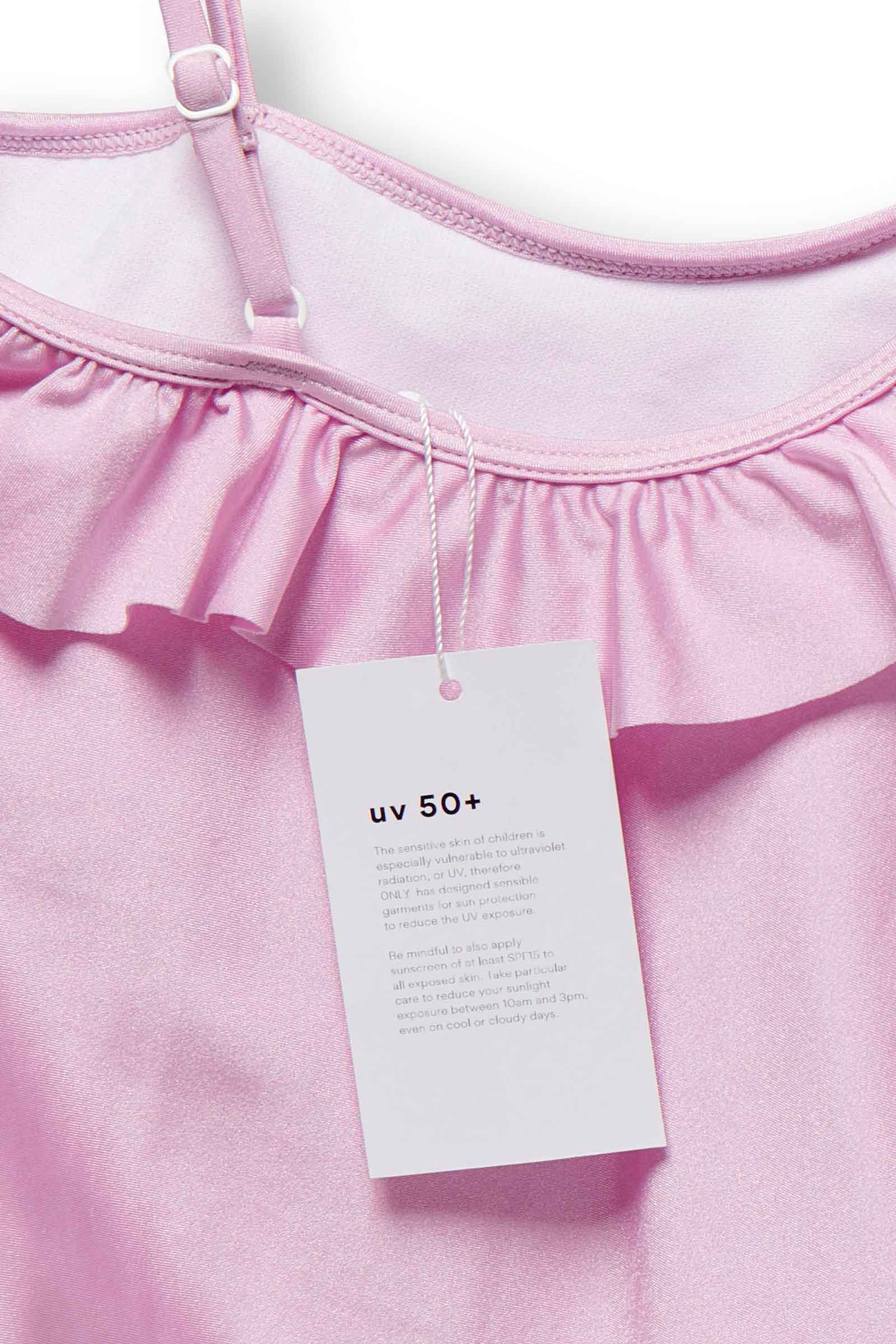 Super sød badedragt fra ONLY i en flot lyserød farve. Badedragten er fremstillet i meget elastisk materiale og har fine detaljer henover brystet.