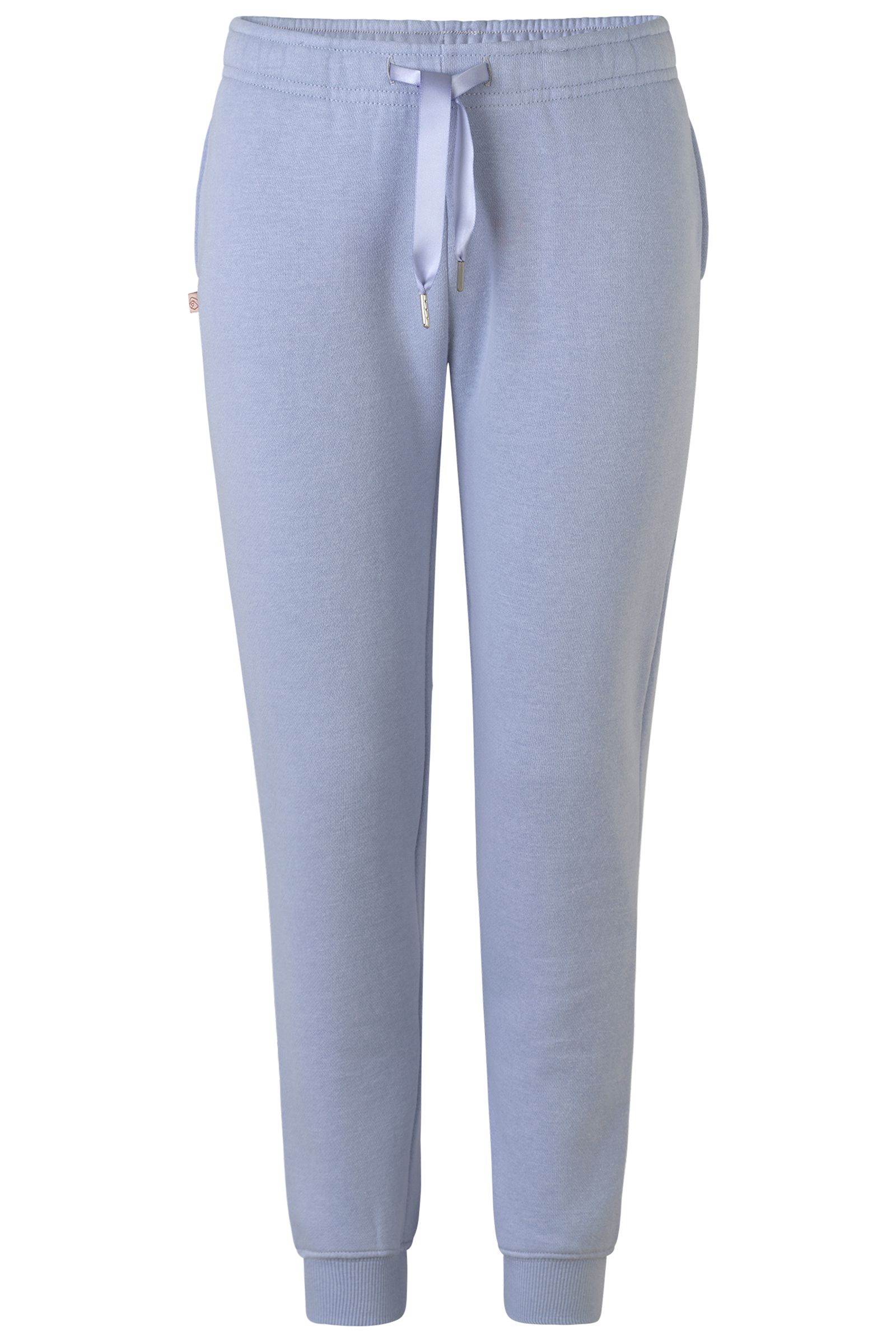 Super søde sweatpants fra Rosemunde. Bukserne kommer her med snørre i livet, justerbar talje og rib i alle kanter. Virkelig smuk lyseblå farve.