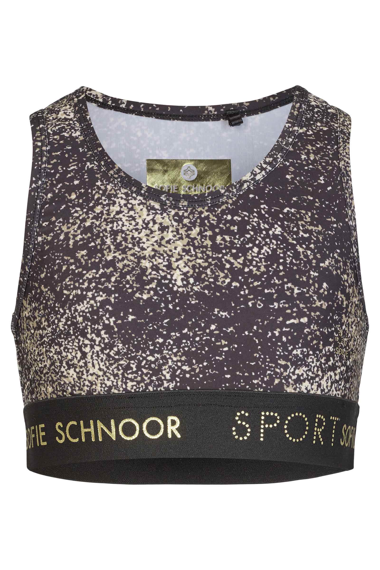 Sød top fra Sofie Schnoor i sorte og guld farver. Toppen har Sofie Schnoor Sport printet på elastikken.
