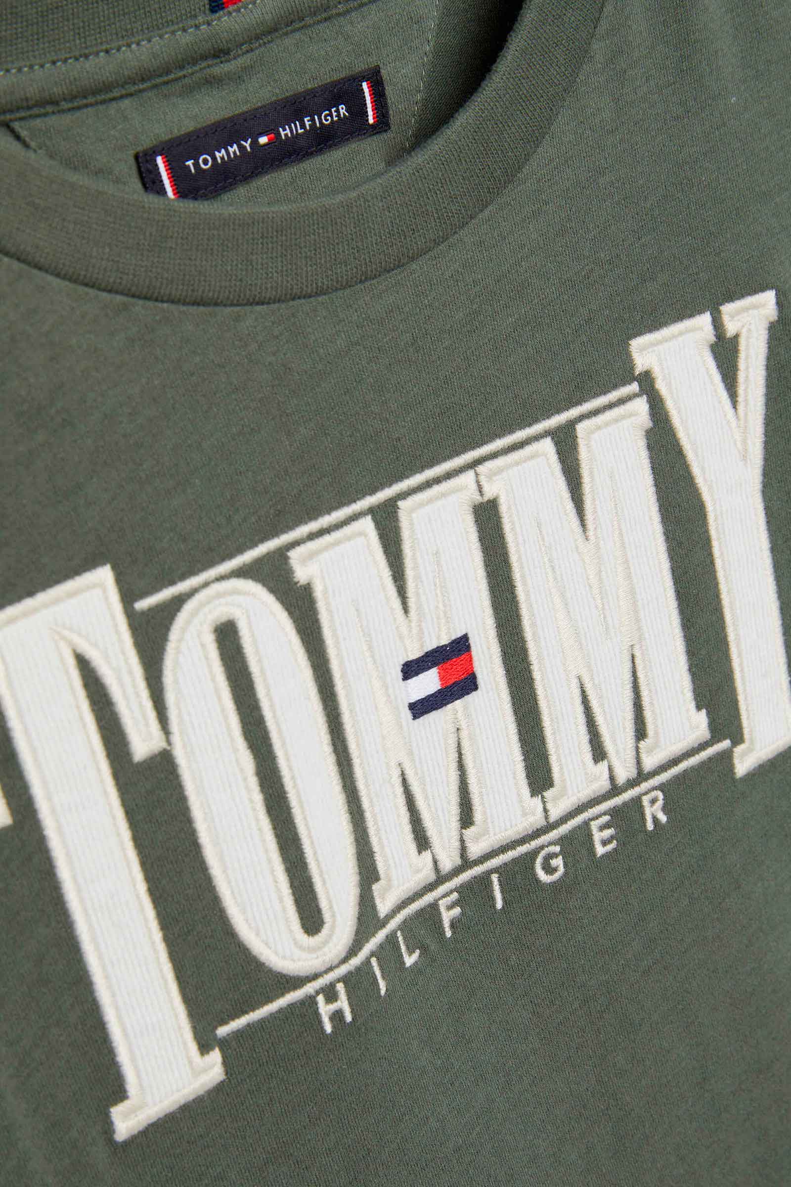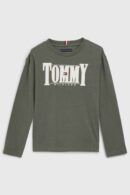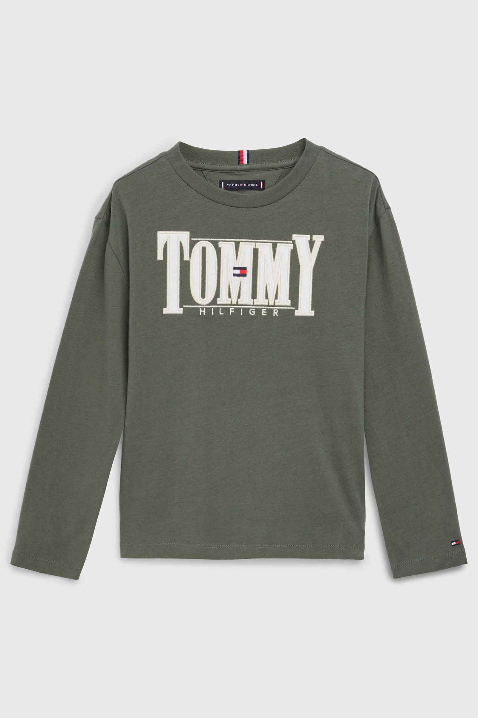Grøn langærmet t-shirt fra Tommy Hilfiger med stort logo foran